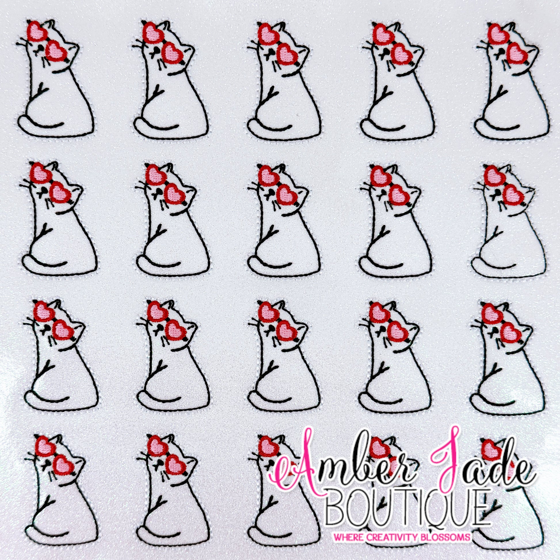 Stitched on Glitter Vinyl and backed with felt.