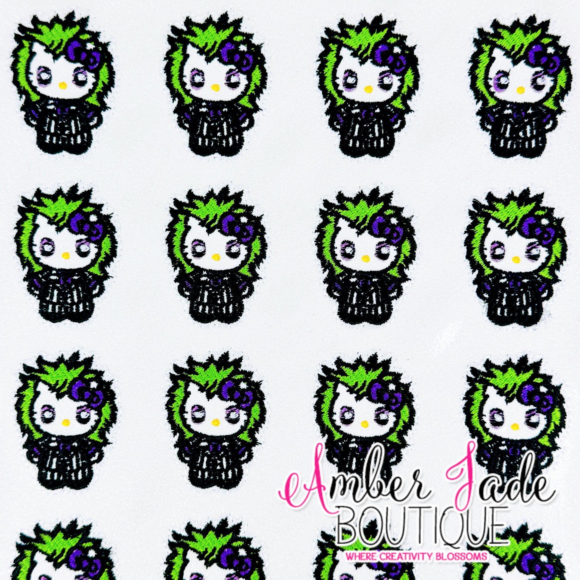 Stitched on Glitter Vinyl and backed with felt.