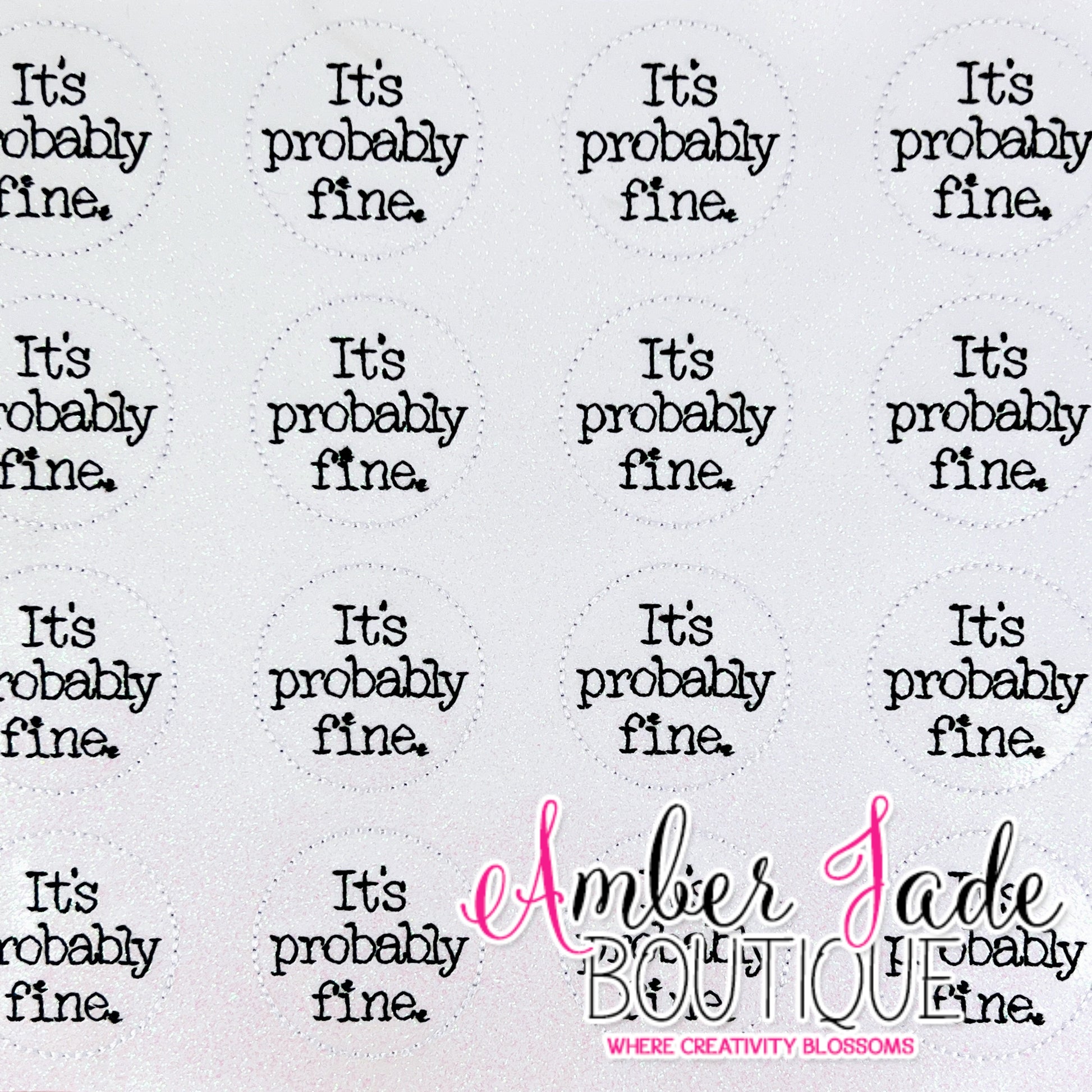 Stitched on glitter vinyl.